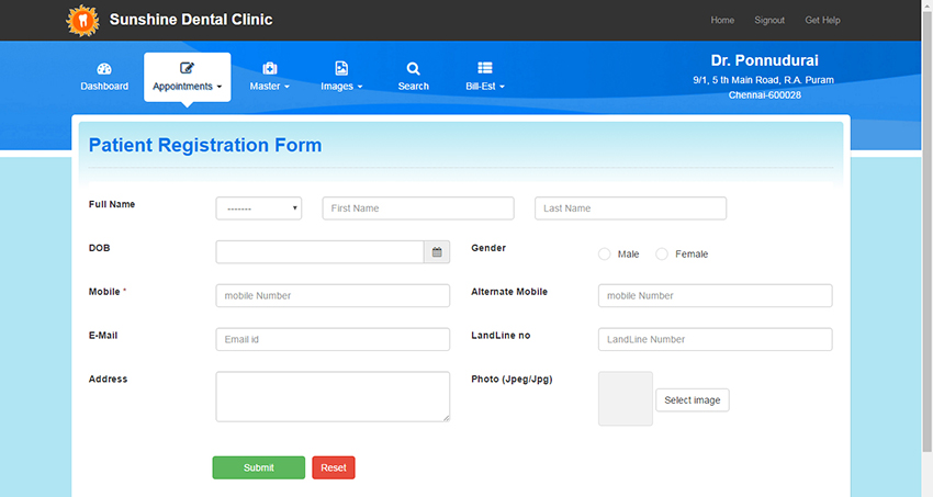 - Digital Consent form: Consent form of the patient with their own details & digital Signature.