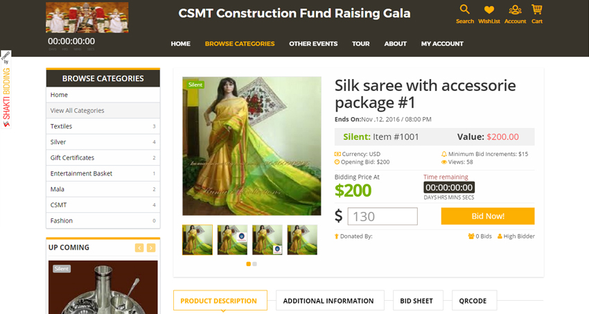 Traditional (live) auction items are configured with fixed increment value. Bidders are encouraged to bid at higher price and they will be shown Bid sheet history of their friendly counterparts to take better decision.